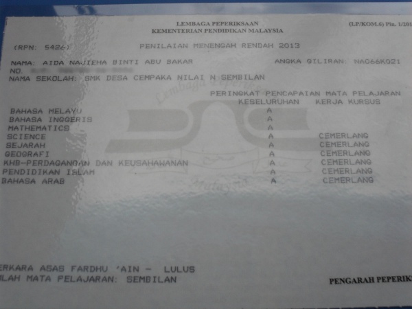 Nama saya Aida Najieha bt Abu Bakar. Saya bukanlah dikategorikan sebagai anak orang berada, kerana kehidupan saya biasa sahaja tetapi saya bersyukur dan berbangga ditempatkan di dalam keluarga ini. Ibu bapa saya sentiasa memberikan yang terbaik untuk kami adik-beradik. Sekarang saya berumur 16 tahun dan berada di tingkatan 4. Kini, saya bersekolah di MRSM Parit, Perak. Saya kongsikan pengalaman saya ketika di tingkatan 3 bersama Memo Plus Gold.